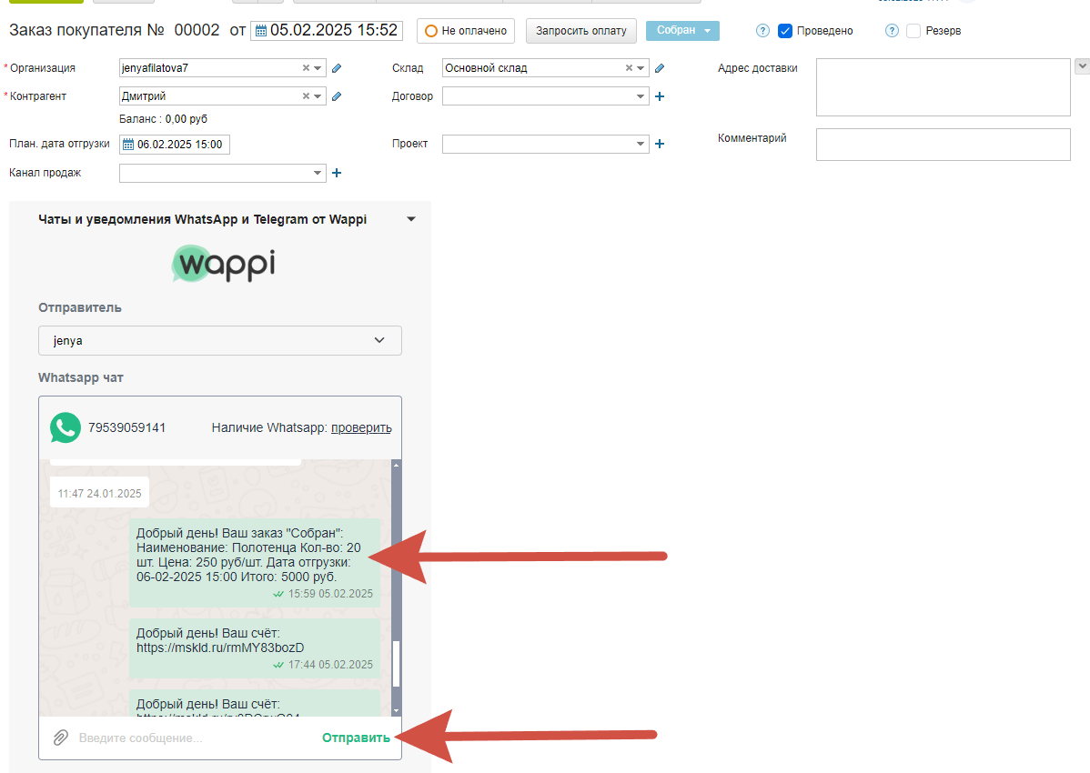 Безлимитные диалоги. Возможность отправить сообщение первым прямо из карточки заказа, контрагента и других сущностей