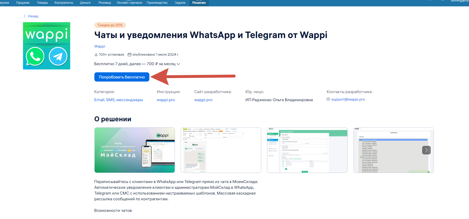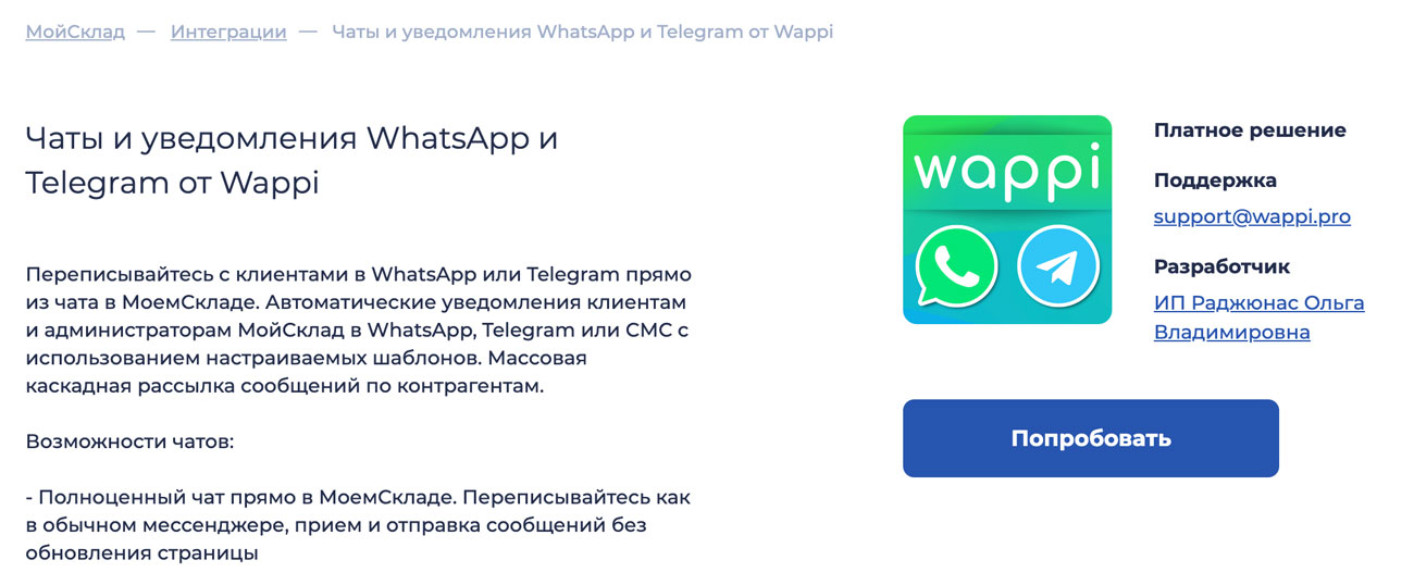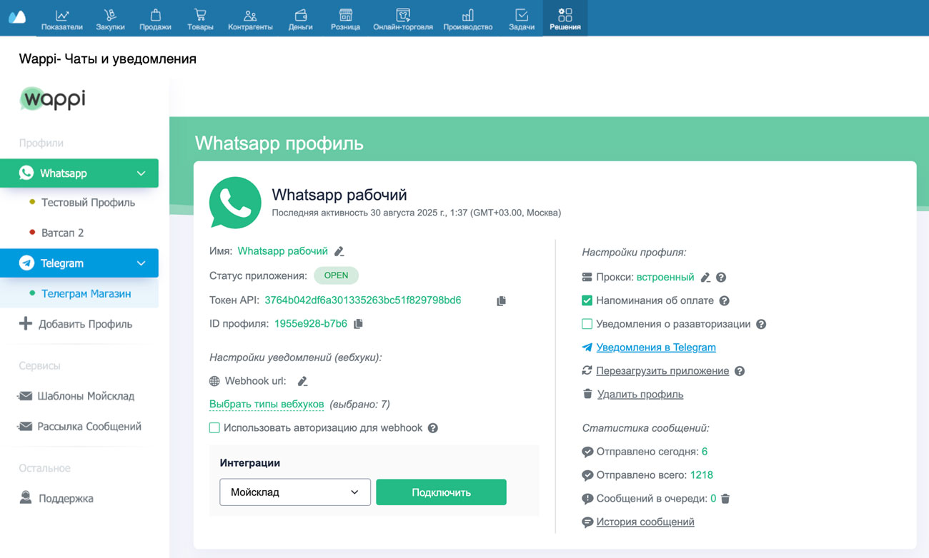 - Интеграция с МойСклад: