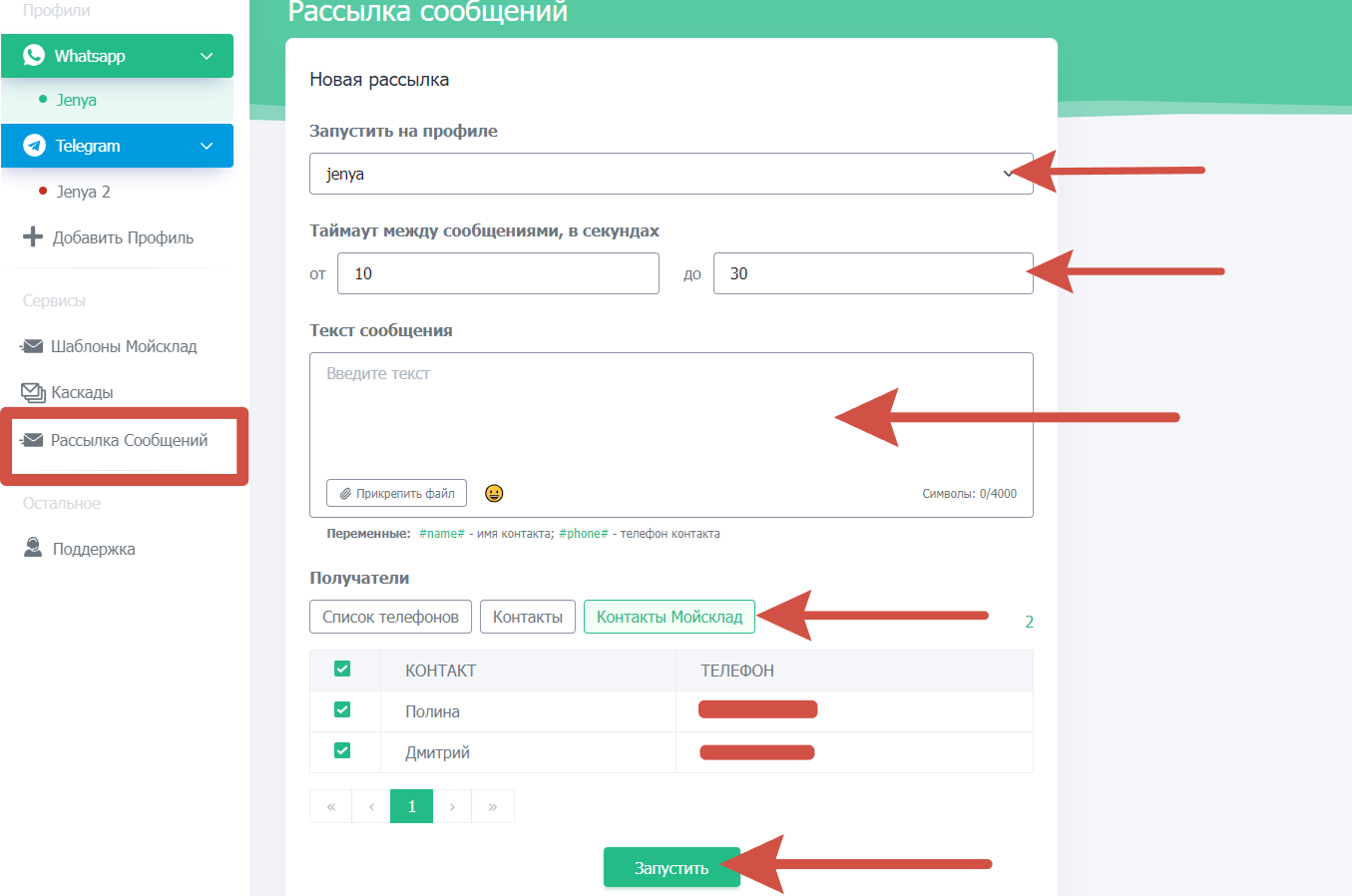 - Рассылка сообщений
